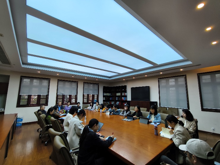 随后,老师们来到科学楼204会议室,开展了热烈而深入的评课交流。在顾思程、张宇昕两位老师简述了自己的教学设计后,本部的程振理、张蕾、黄霞老师,以及伟长实验部的华靖、施怡、郑俊昊老师先后发言评课。两位老师在接到开课通知后,认真对待,积极准备。在完成平时的繁重教学任务的同时,她们挤出时间,从选定课题、构思备课、师傅指导到试上调整,每个环节都精益求精。对两位新教师积极上进的态度,以及从容、成熟的课堂表现,老师们一致给予了高度肯定。发言中大家表示,她们都在准确理解文本的基础上,能抓住文本的特质、设计合理的情境和问题引导展开教学,展现了较好的基本功。同时,老师们也指出了课堂可以改进的地方,如专业学养如何转化为课堂支撑、情景层次性的落实、板书练习等。当然,随着教学经验的积累,相信这些不足之处会有所改善。